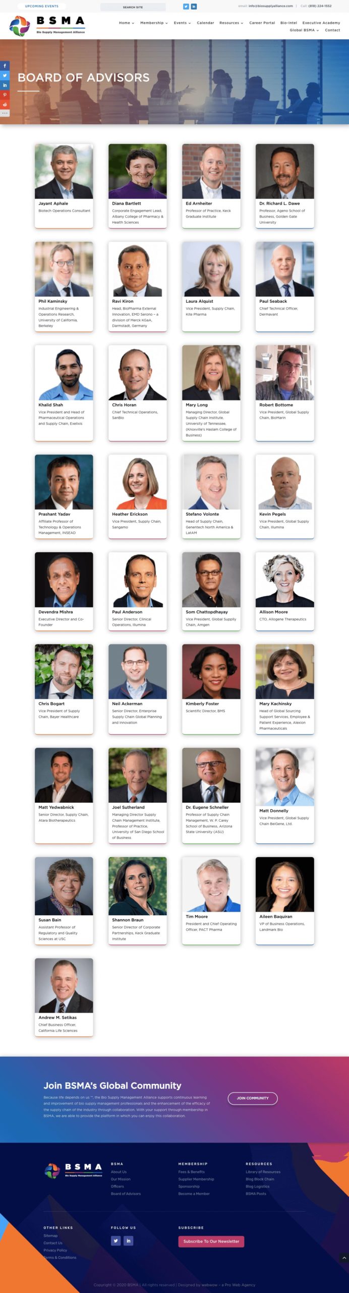 The Bio Supply Management Alliance (BSMA) is a global community of supply chain leaders in the biotech, biopharma, and biomedical industries, providing a platform for collaboration, innovation, and best practice sharing.